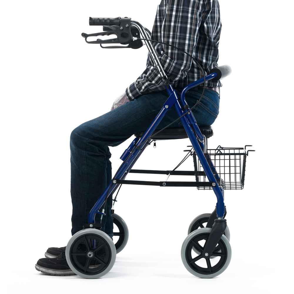 Ideální pro pacienty s omezenou pohyblivostí, kteří jsou odkázáni na pomůcku pro chůzi. Výškově nastavitelné rukojeti poskytují přizpůsobení pro různé uživatele, zatímco ruční brzdy zajišťují snadné ovládání. Polstrované sedátko umožňuje uživatelům pohodlně si odpočinout, kdykoli je to nutné, a odnímatelný nákupní košík je praktickým prvkem pro přenášení osobních věcí během nákupů nebo vyřizování pochůzek.